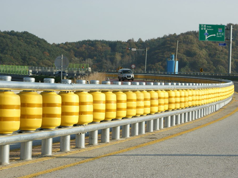 5. शॉक अवशोषित रोलर: यह रोलिंग बैरियर सिस्टम का मुख्य भाग है। रोलर्स को आमतौर पर यूरीथेन या रिसायक्कल हार्ड रबड से बनाया जाता है। यह वाहनों के झटके को अवशोषित करता है और प्रभाव ऊर्जा को घूर्णी ऊर्जा में बदलता है।